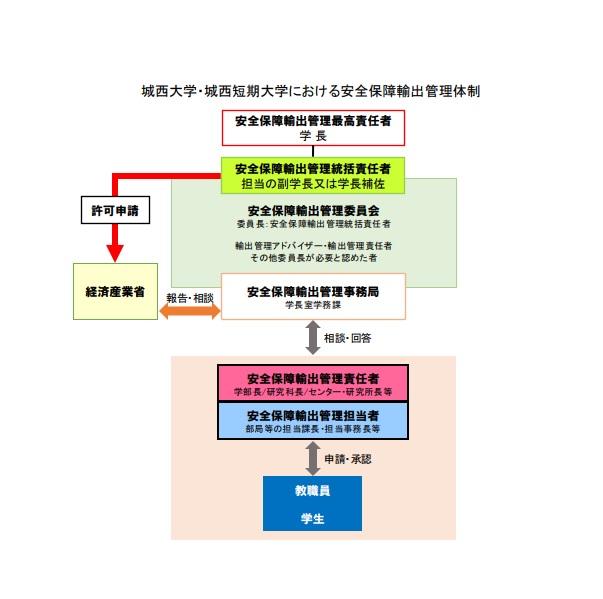 これらの活動では、規制対象となる物品や技術が海外に提供される可能性があります。そのため、本学では、教職員の皆さんが自由で活発な教育・研究活動を安心して続けられるよう、適切な管理体制と明確なルールを整備しています。