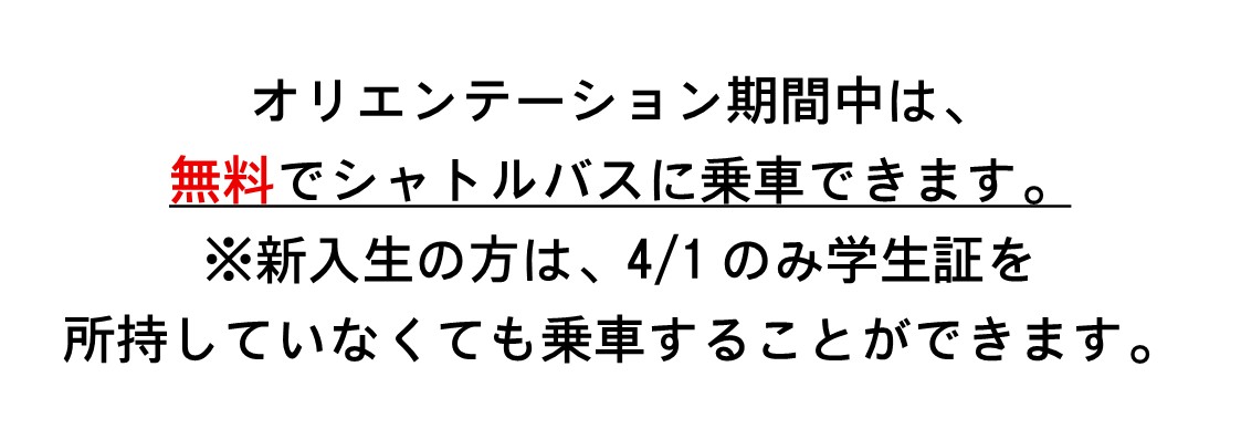 ※入試、オープンキャンパス、式典日等は、運行時間に変更があります。関連ページ、掲示にてご確認ください。