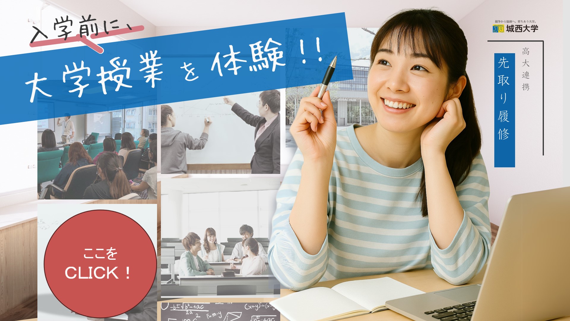 高校と大学での学びは、大きく異なります。大学の授業を入学前に受けることで、高校と大学での学びの違いを理解し、大学の魅力を知り、さらに学習機会を拡大することができます。また城西大学が指定する授業科目の履修を行い、単位を修得し、城西大学に入学した場合、単位として認定することができます。埼玉県の公立高等学校に通う方はもちろん、2026年度より本学と協定を結んでいる私立高等学校も対象となりました。