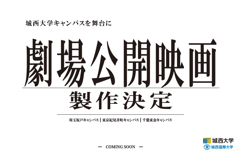 城西大学(埼玉坂戸キャンパス、東京紀尾井町キャンパス)および城西国際大学(千葉東金キャンパス)を舞台に、劇場公開映画の制作が決定しました。