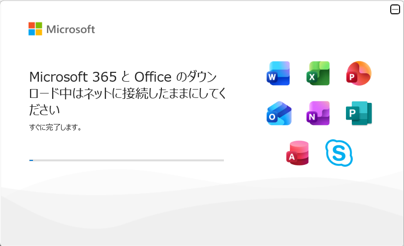 不明な点は、事前に情報推進課に確認して下さい。 - Officeのダウンロード、インストールには、ネットワークの通信状態によって時間がかかる場合があります。