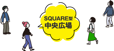 そして、HUBからは屋根付きの回廊“JOSAI SQUARE”が広がり、