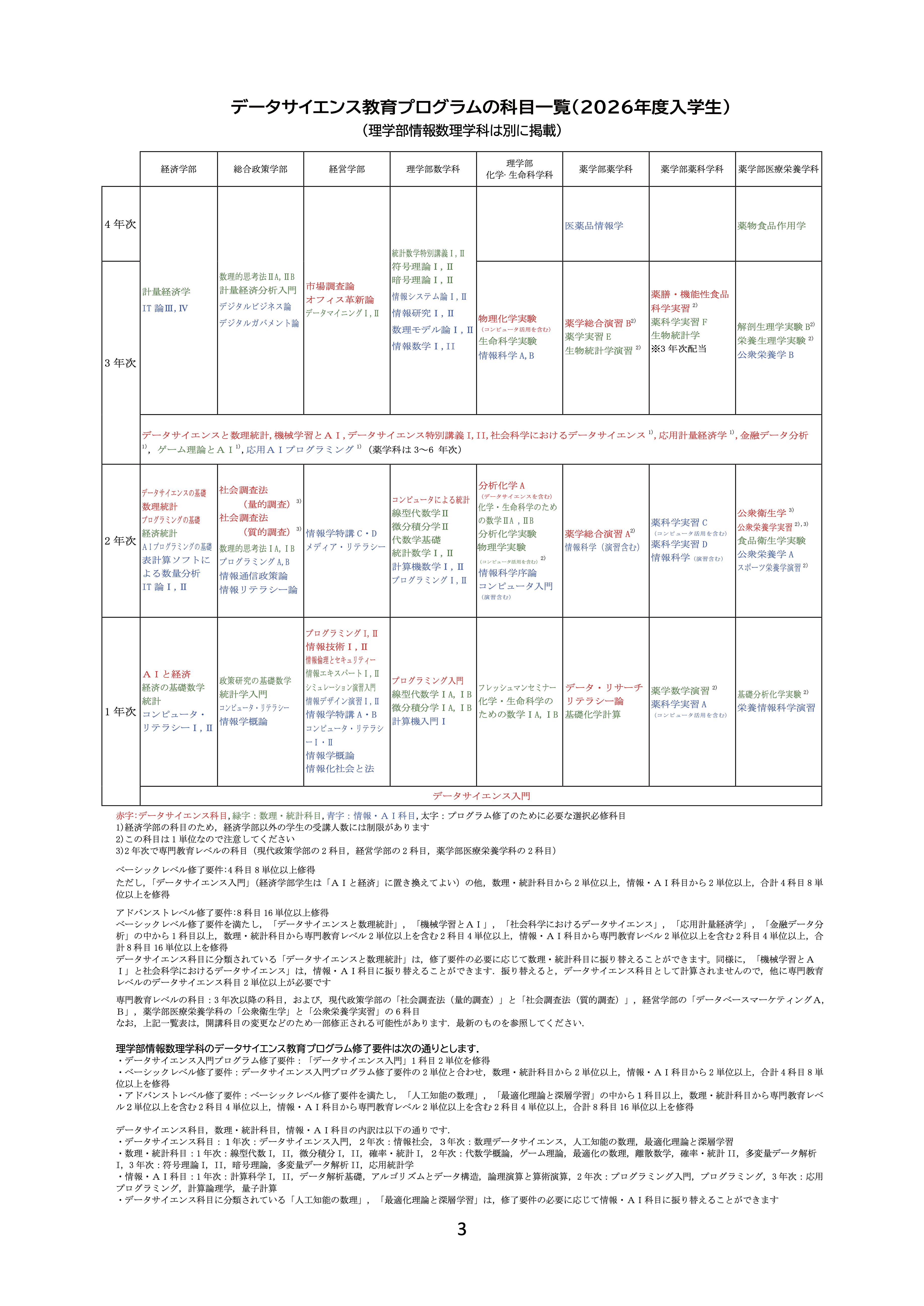 データサイエンス教育プログラムの科目一覧(2026年度入学生)