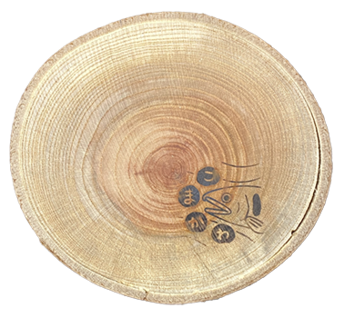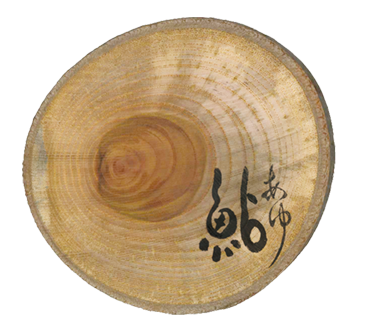 薬学部医療栄養学科OB 小林亮介さん(書道師範)の書「鮎」の字の焼き印を押してあります!