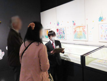 2日目(27日)では、学芸員の仕事を体験するため、学内に設置しているモバイルミュージアムの展示替え作業をはじめ、ギャラリートークにも挑戦しました。ギャラリートークでは、何度も練習を重ねていき、実際に来館者に向けて自分なりの言葉で作品の魅力を伝える展示解説を披露しました。さらに、新商品グッズの考案にも取り組むなど、多岐にわたる美術館業務を体験する貴重な機会に繋がりました。