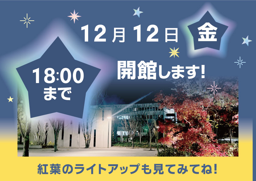 12月12日(金)は開館時間を9時半~18時まで延長します!