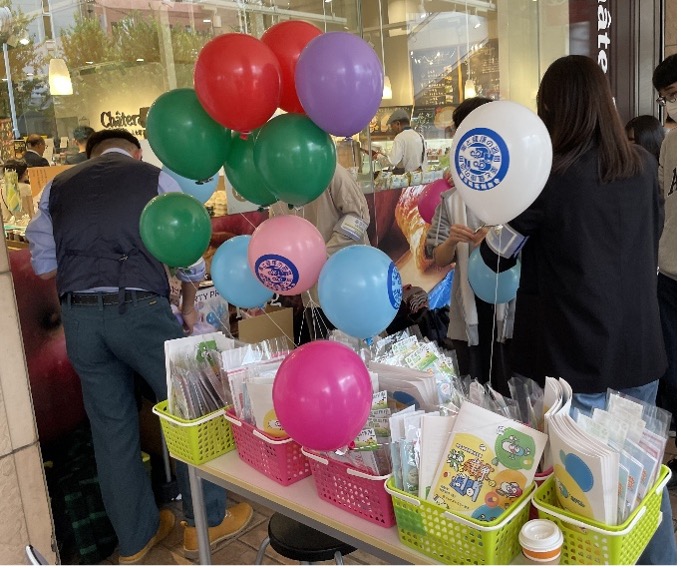 学生たちは事前に準備した薬学に関するパンフレットや栄養カードゲーム、キャンペーン風船などを活用し、 地域の皆さまと交流しました。