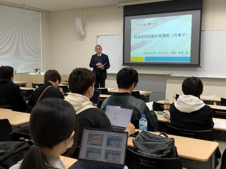 初日は緊張した様子でしたが、次第に緊張もほぐれて活発に討論する様子が伺えました。春学期にも対策講座を予定しており、教員への道をサポートしています。