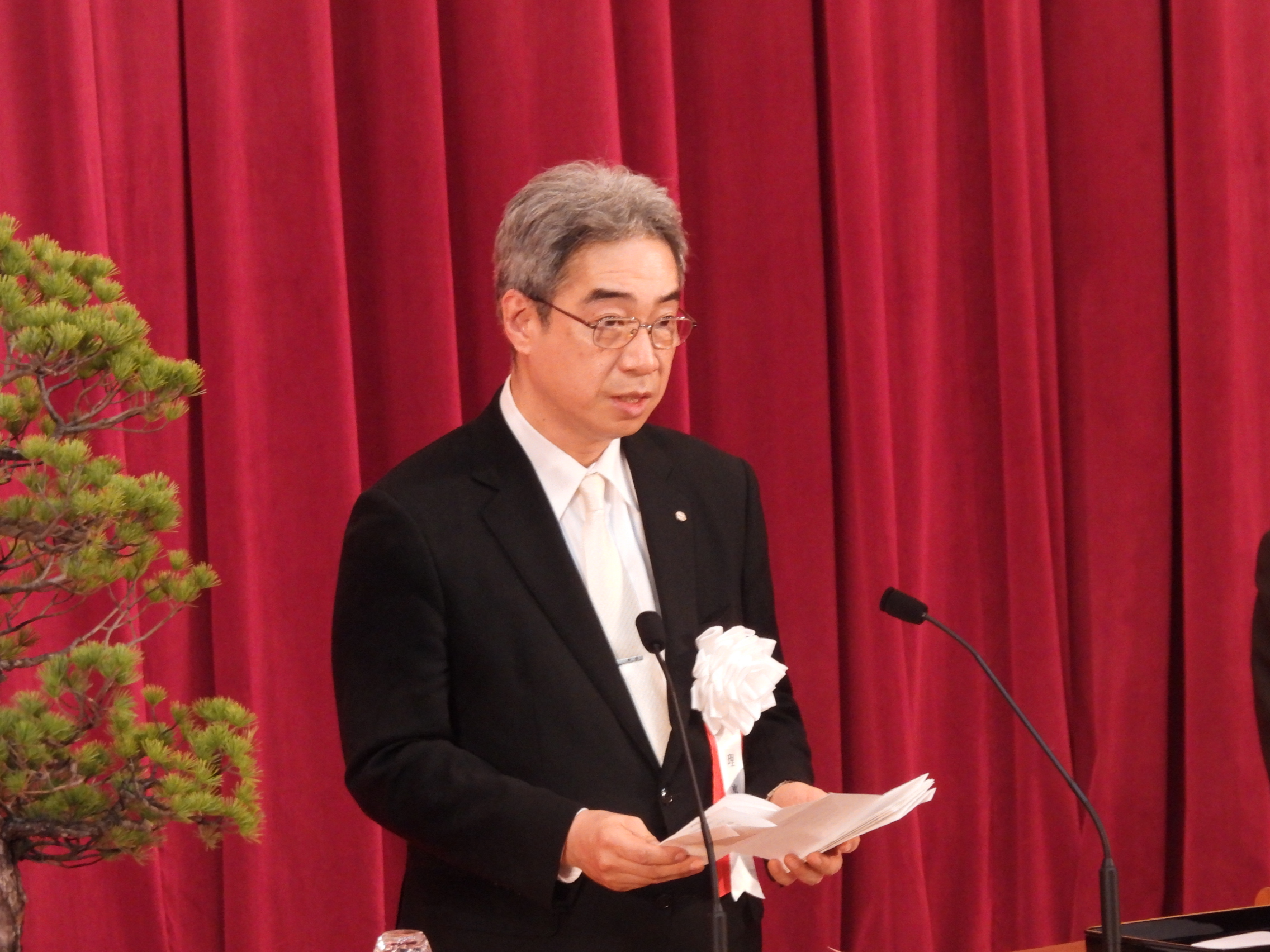 式では、上田秀雄教務部長による開式の辞に続き、今年度新たに学長に就任した坂本武史学長が告辞を述べました。