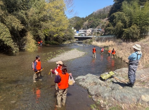 当日は、生徒たちが川の中を実際に歩きながら調査を行い、フィールドワークを通じて自然環境の変化を体感しました。現場での観察や議論を通じて、科学的な視点で自然を捉える貴重な学びの機会となりました。