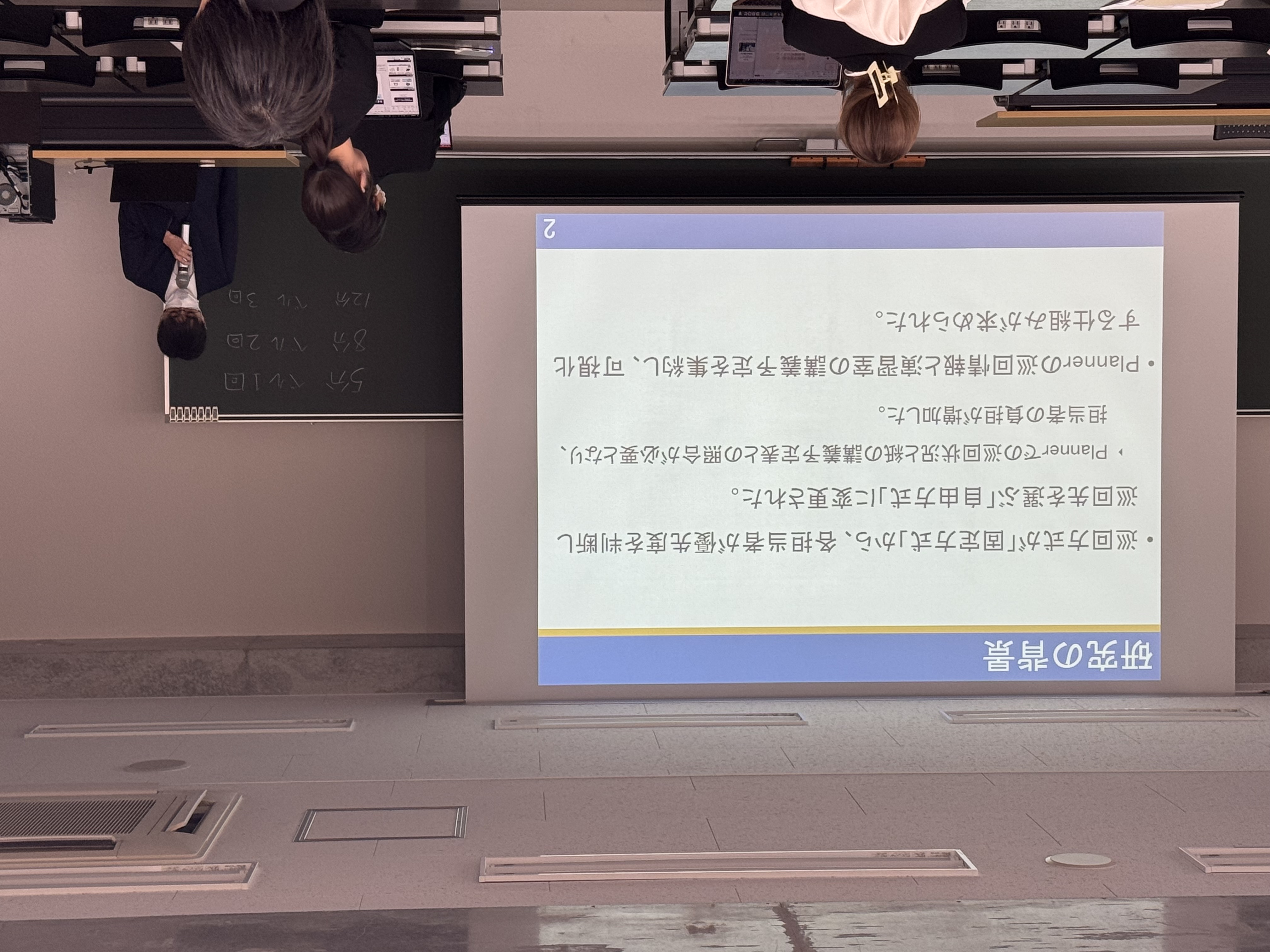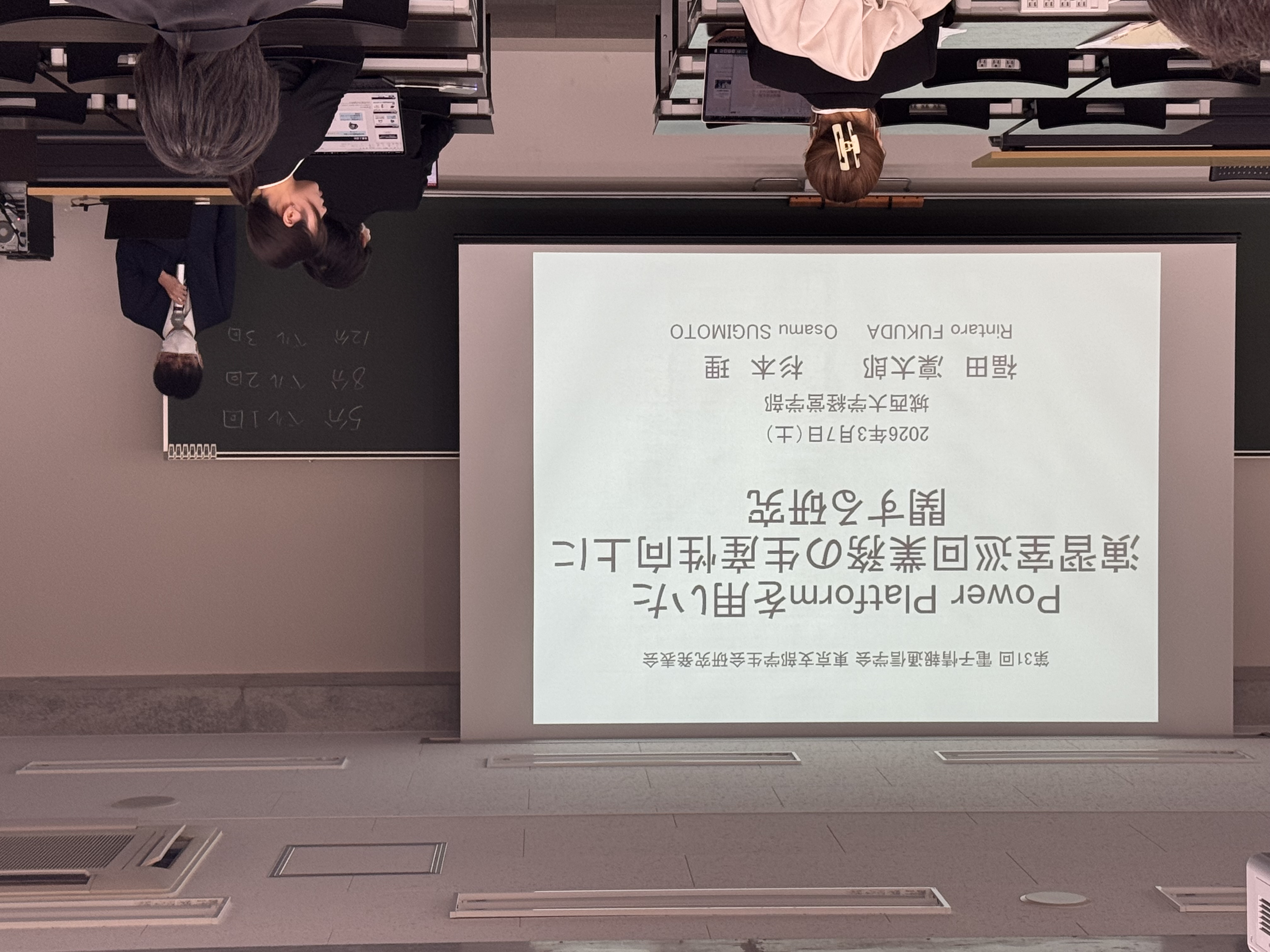 福田さんの研究は、本学におけるPC演習室の巡回業務を、最新のデジタル技術を活用していかに効率化するかという、実務に即した非常に実践的なものです。