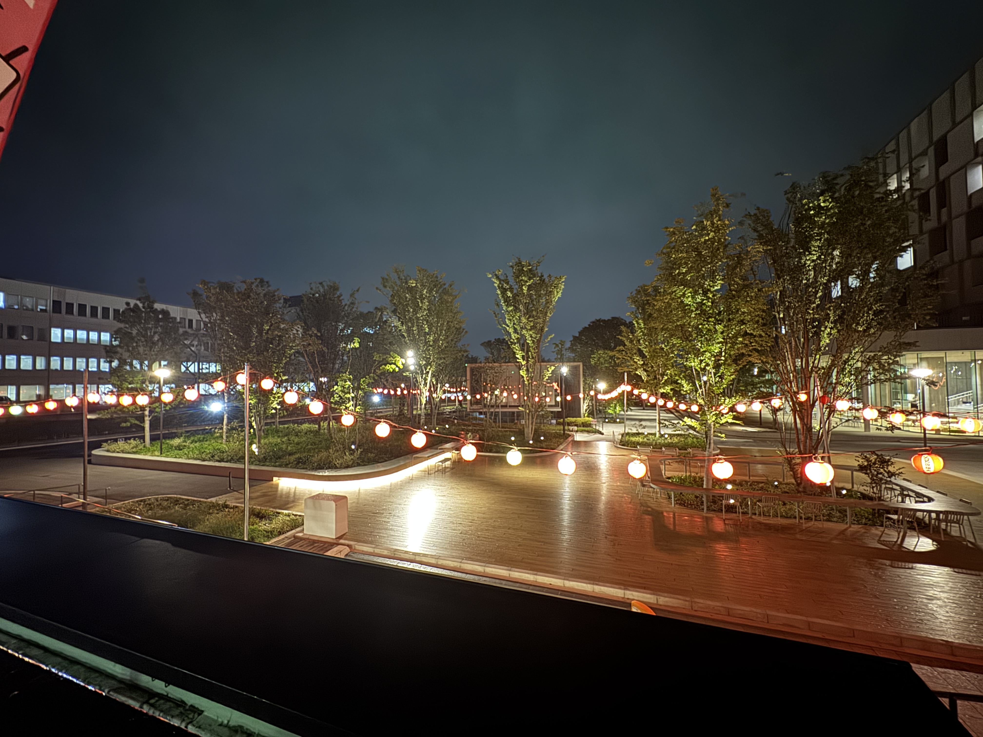 夕刻になると提灯が一斉に点灯し、キャンパスを温かな灯りが包みます。