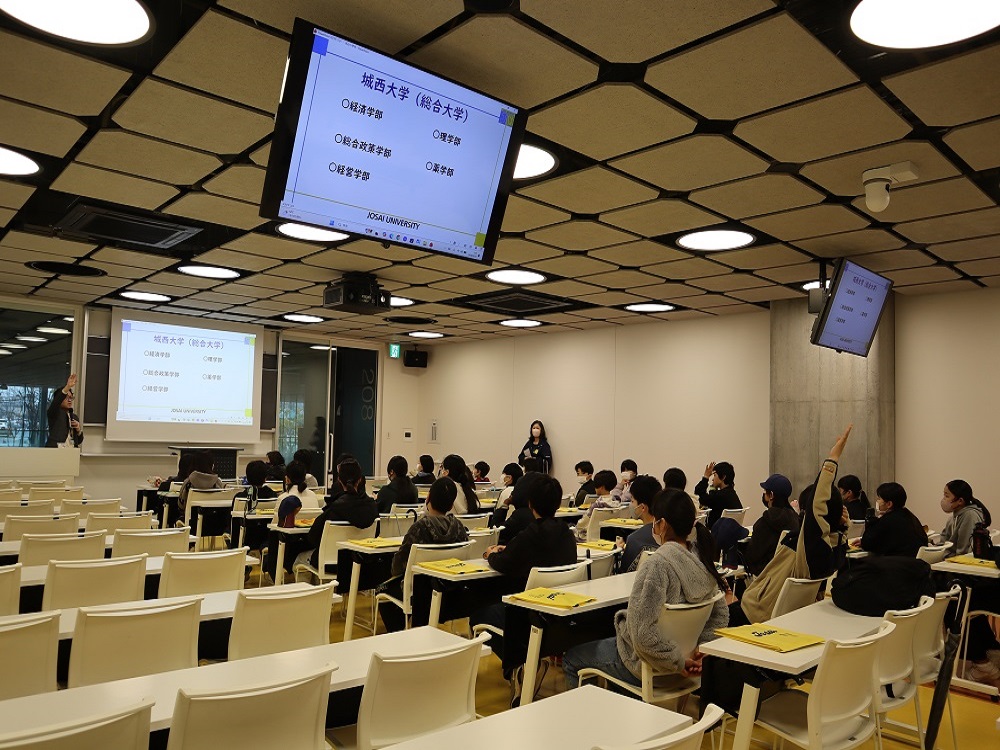 はじめに入試課より大学の紹介があり、城西大学は5つの学部がある総合大学として「好きと思ったことを学び、研究できる大学」であることを説明しました。