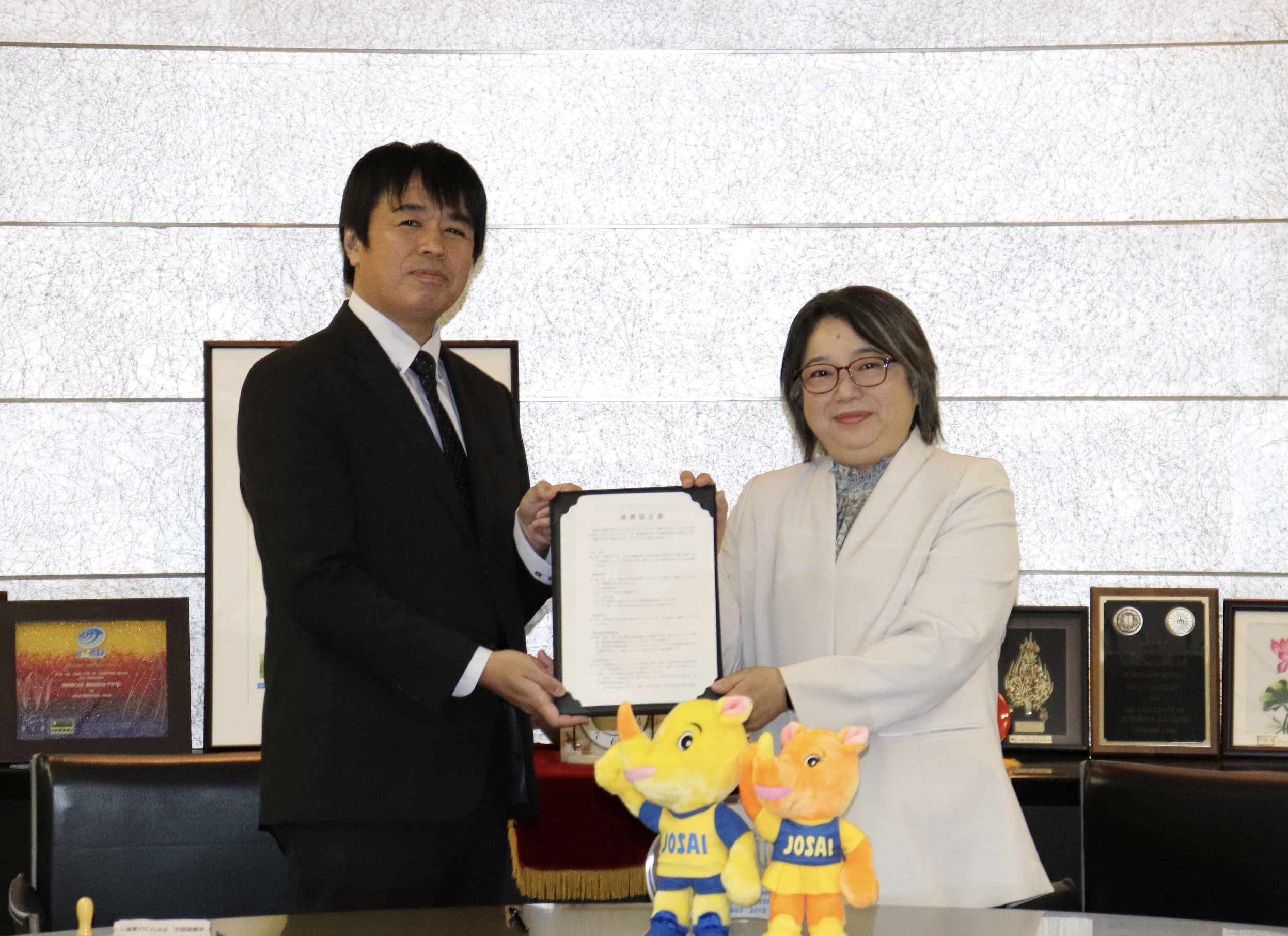 左:さいたま市薬剤師会 会長 野田 政充 先生、右:薬学部長 岡﨑真理