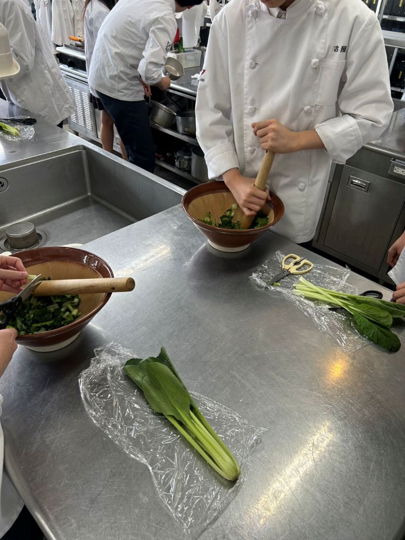 1コマ目の講義では、腎臓が悪くなったときどのような食事療法を行うのかについて学びました。2コマ目の実験では、カリウム測定器を使用して、小松菜の生とゆでこぼした後のカリウムの変化について学びました。最後に「食について学んでいる」ことは大きな強みであり、自分たちの強みを活かしてどんどんチャレンジをして欲しいというメッセージを送りました。