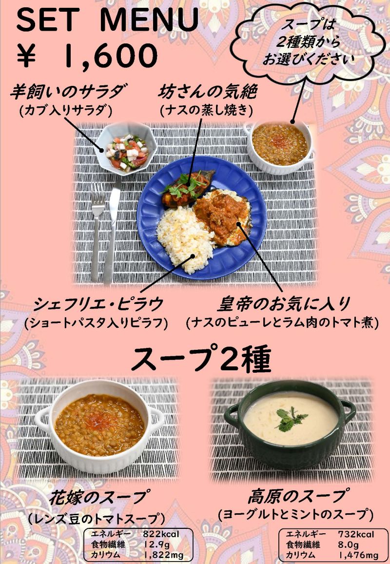 ・花嫁のスープ(レンズ豆のトマトスープ) or 高原のスープ(ヨーグルトとミントのスープ)