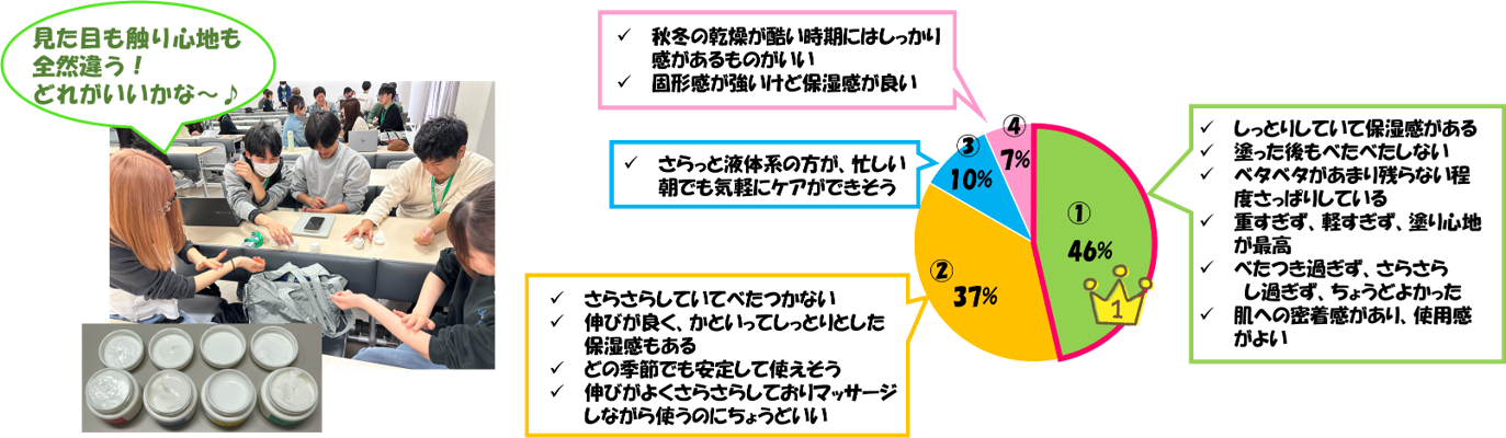 さわって、みんなで意見を出して、自分たちで使いたいクリームを選びました。