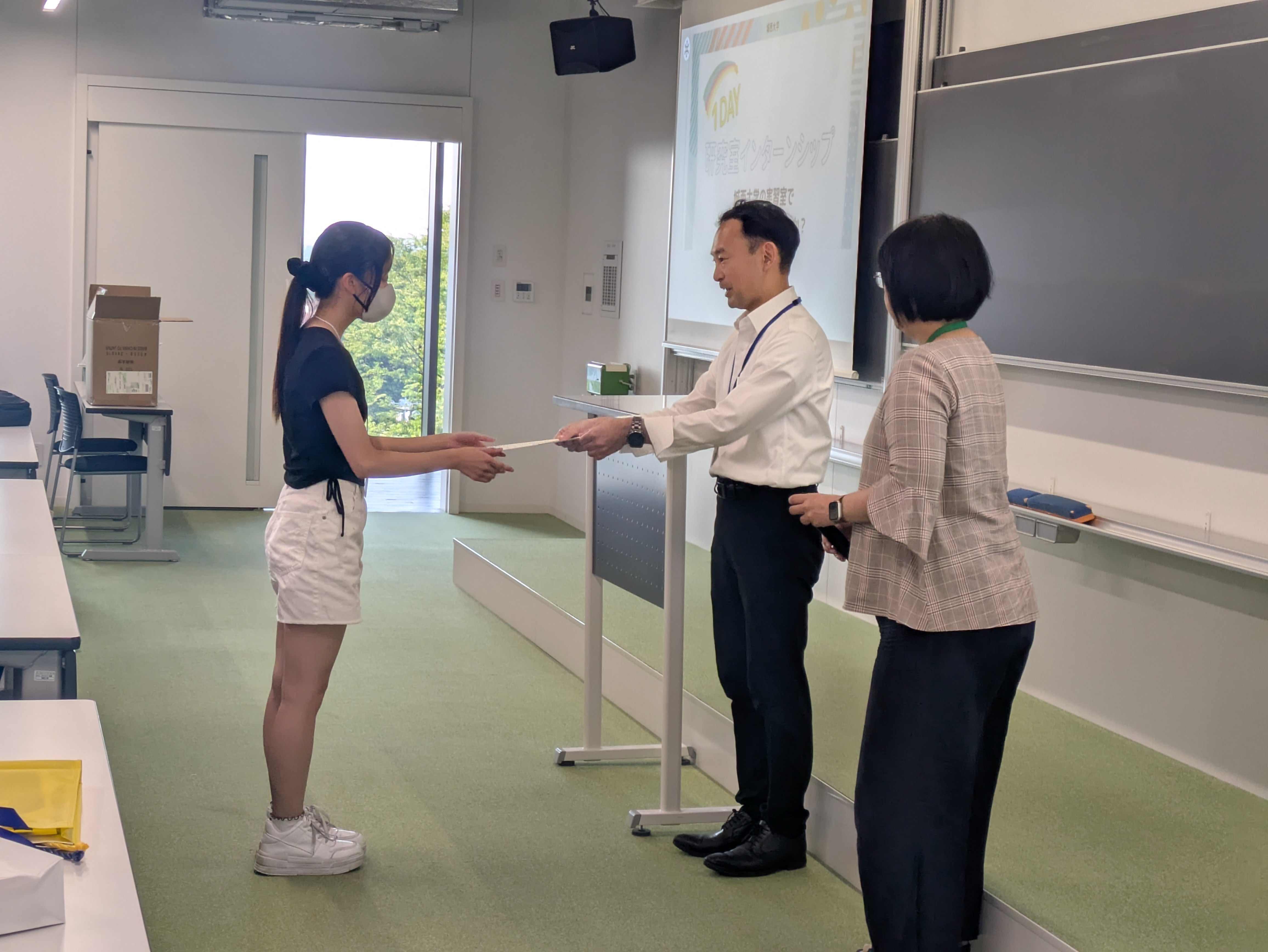 研究室インターンシップを修了された方には、修了証を贈呈します。最後は全員で修了証を持って、集合写真の撮影です。