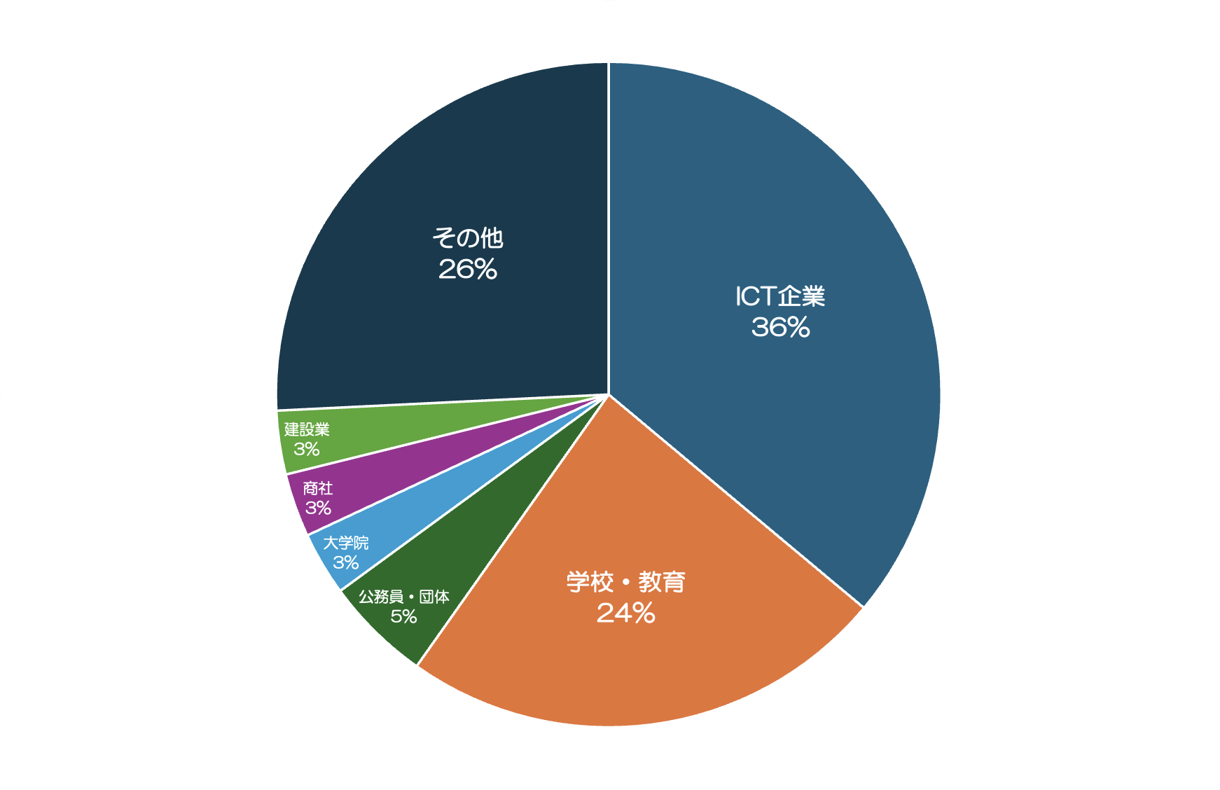 2025年3月に数学科 東京紀尾井町キャンパスを卒業した学生の進路実績です(ご参考)。「その他」は航空,金融,医療,小売,メーカー,アパレル等の企業を含みます。