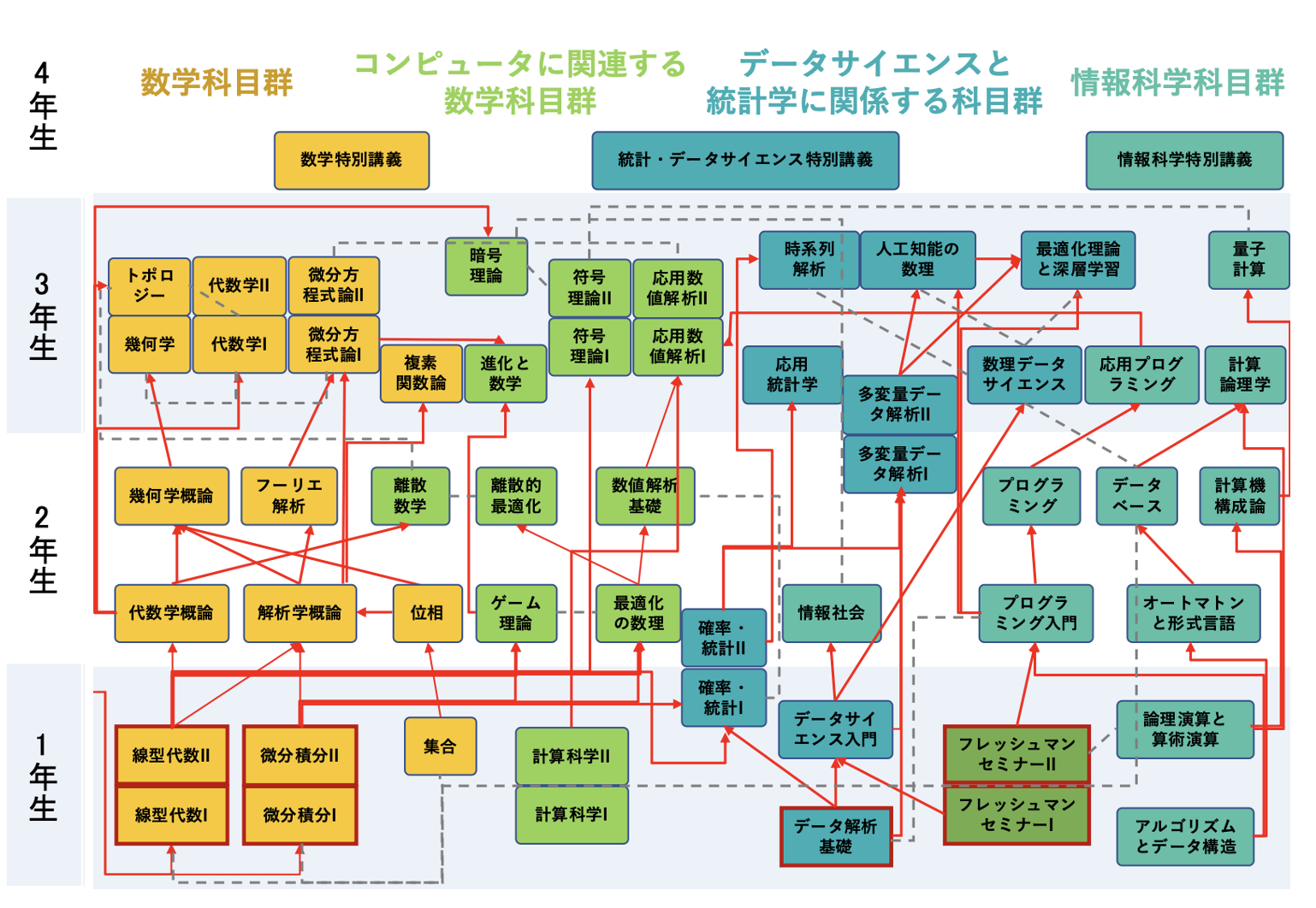 数学、統計・データサイエンス、情報科学の基礎を固めていきます。