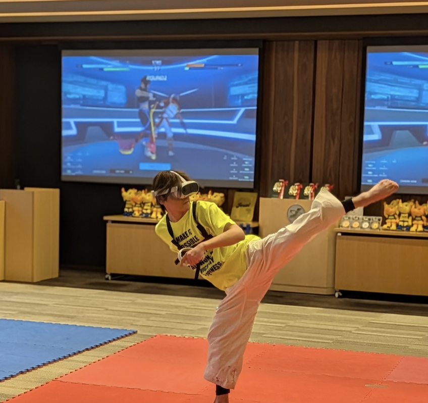 ヴァーチャルテコンドーとは、プレイヤーの全身の動きをモーショントラッキングし、アバターに反映させて対戦を行うeスポーツのオリンピック種目です。