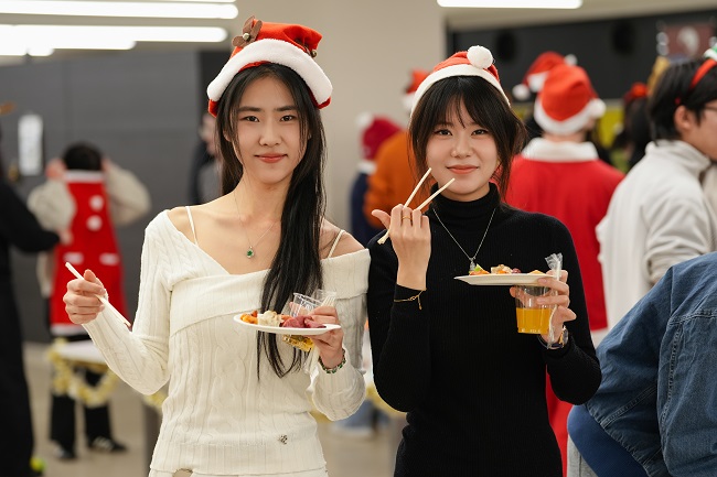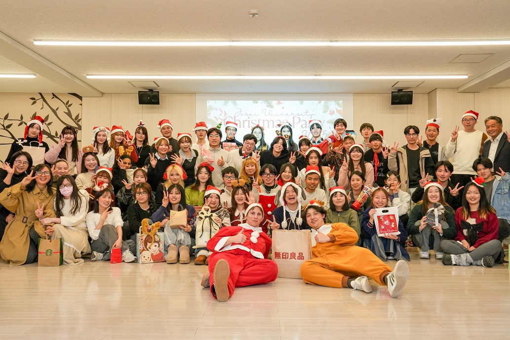 交換留学生、協定校からの共同教育プログラム生、別科の留学生など、総勢70名で国際色豊かなパーティが開かれ、ハンガリー、中国、台湾、ベトナム、ミャンマー、スリランカ、モンゴルからの留学生たち、そして城西大学の国際交流サポートチーム“JIST”のメンバー、国際教育に携わる教職員などがクリスマスの気分を味わいながら交流しました。