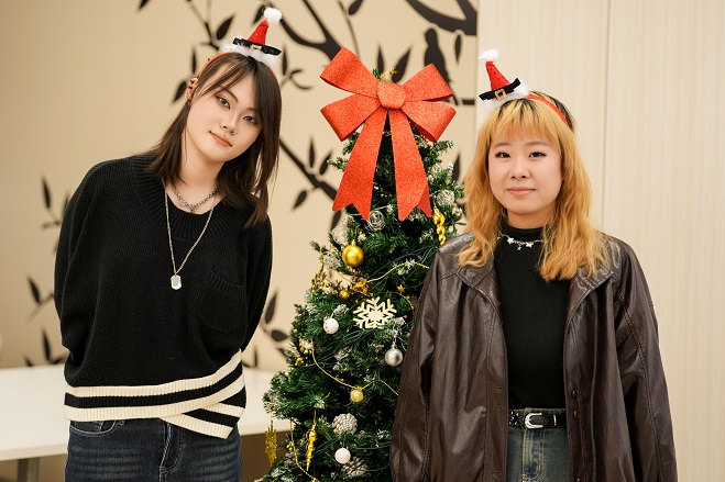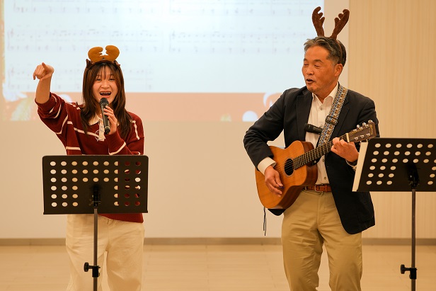 次に登場したのは、城西短期大学の三國先生とベトナム出身のタオさん。三國先生のギター演奏に合わせて、タオさんのやさしい歌声が響き渡ると、会場は再びクリスマスムードに包み込まれました。