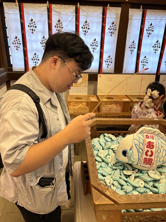 留学生たちは初めて訪れる蔵造の街並み、時の鐘、氷川神社に感動していました。当日は生憎の小雨でしたが、氷川神社で伝統芸能を鑑賞し、鯉おみくじ釣りなども楽しみ、案内をしてくれた日本人学生たちとも親睦を深めていました。