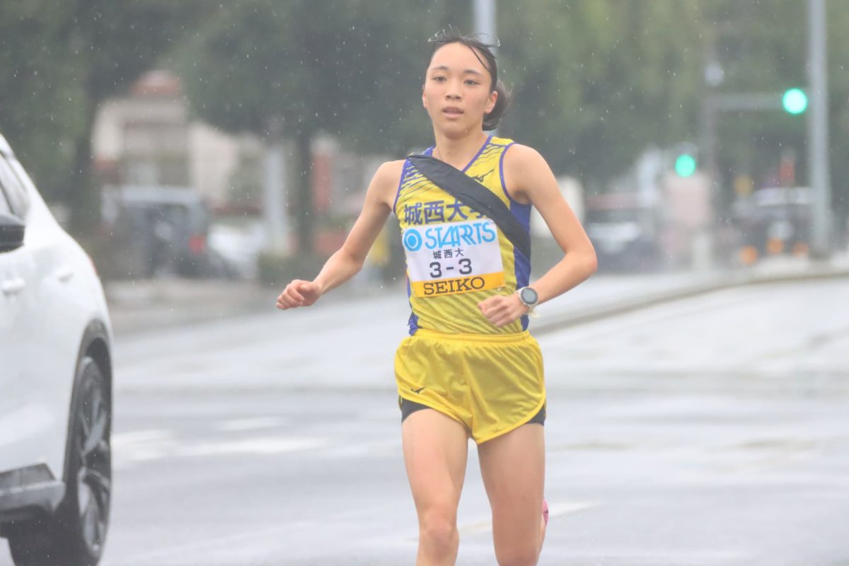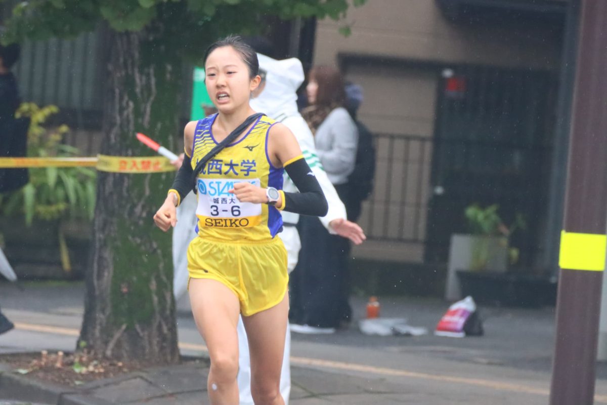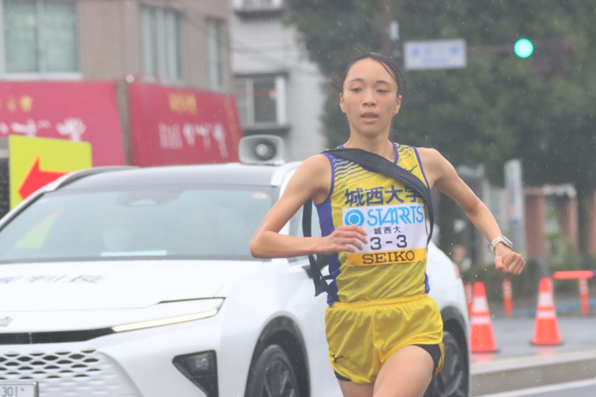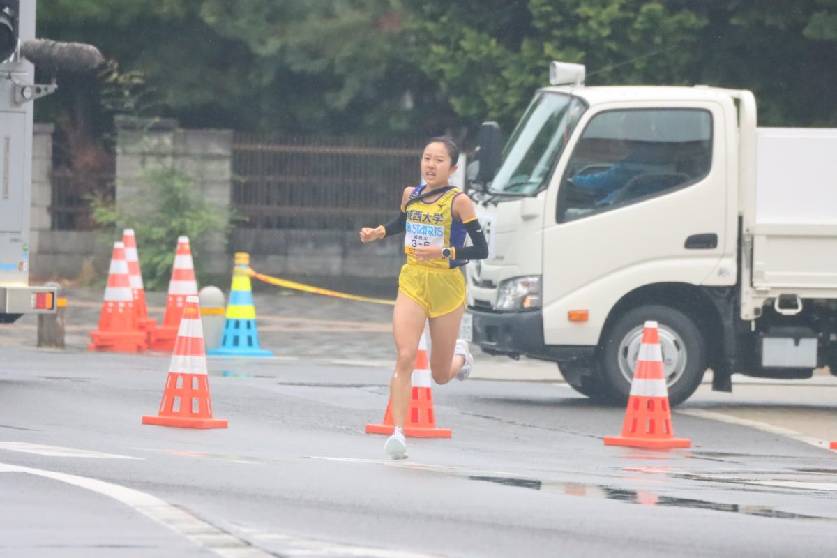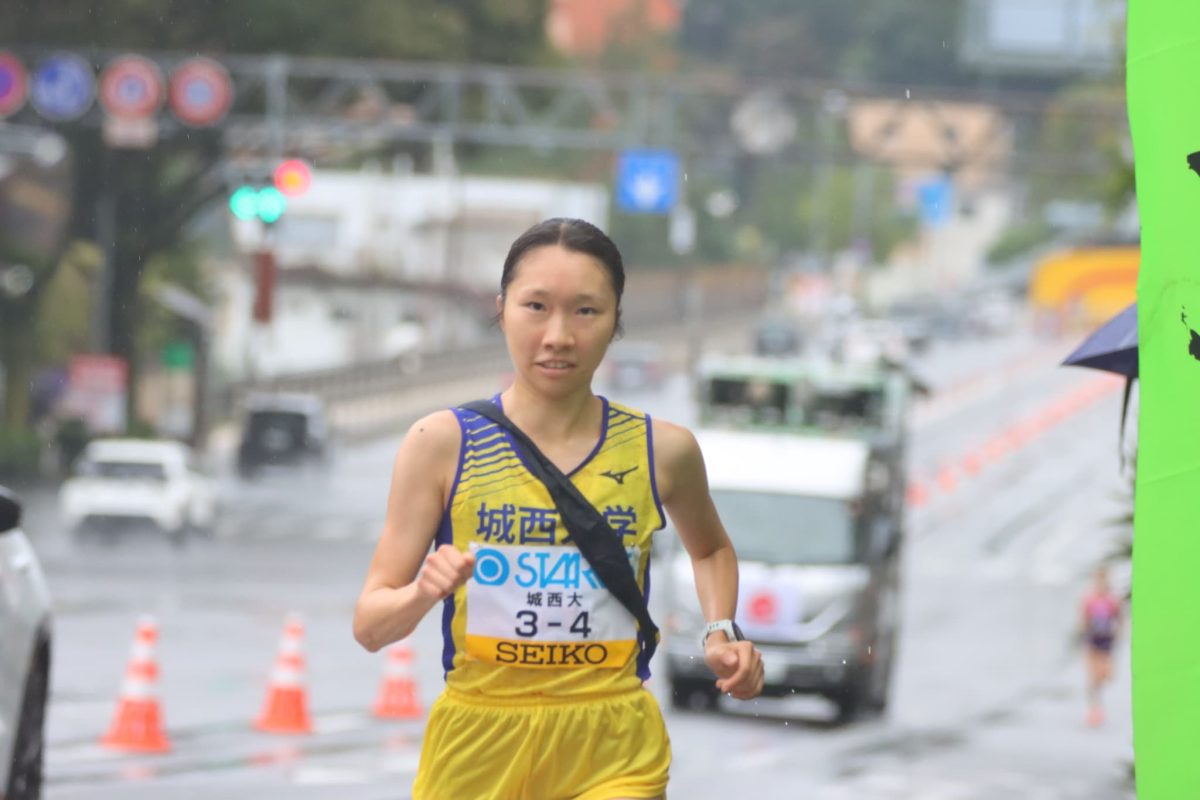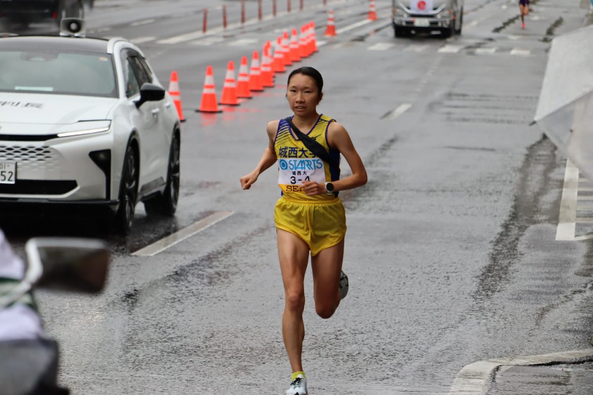 今回全日本大学女子駅伝の3区を走らせていただきました。先頭で心晴先輩がきてくれたので、ここで自分がやるしかないと思いスタートしました。いつも駅伝では最初突っ込んでしまい後半垂れてしまう展開が多かったですが、今回は最初からうまく刻むことができラストの上りでもスパートをかけることができたと思います。初めての中継車の後ろは新鮮で走っていてとても楽しかったです。1年目にしてずっと目標としていたことが叶ってうれしいです!!!