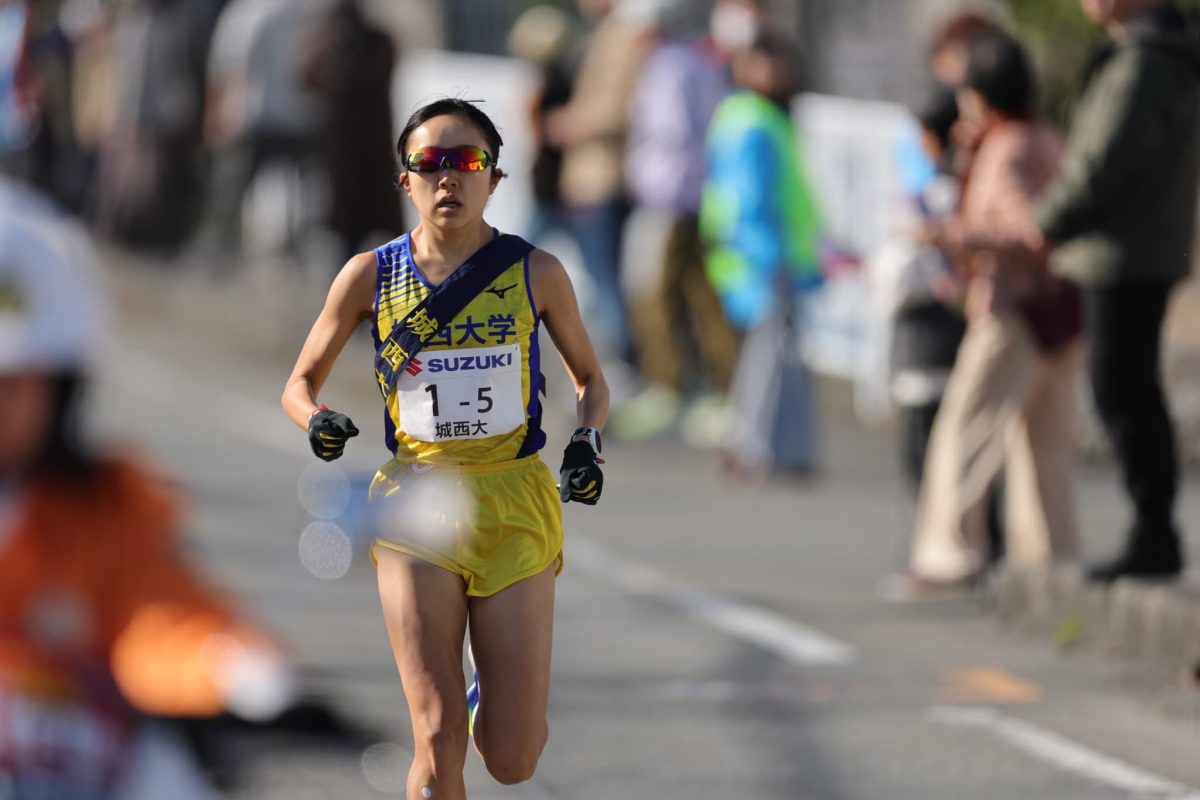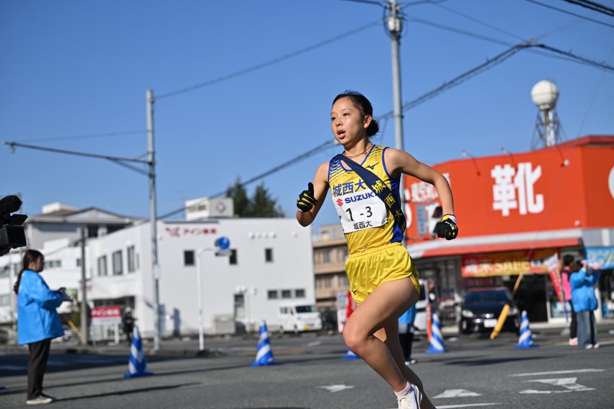 ラストの競り合いでも由菜に一秒でも早く襷を渡せるようにスパートをかけることができました。目標にしていたタイムをクリアできて、区間賞も取ることができて、とても嬉しいです。そして、チーム城西で二冠を勝ち取ることができました!この1年間の努力が報われてとても嬉しいです。
