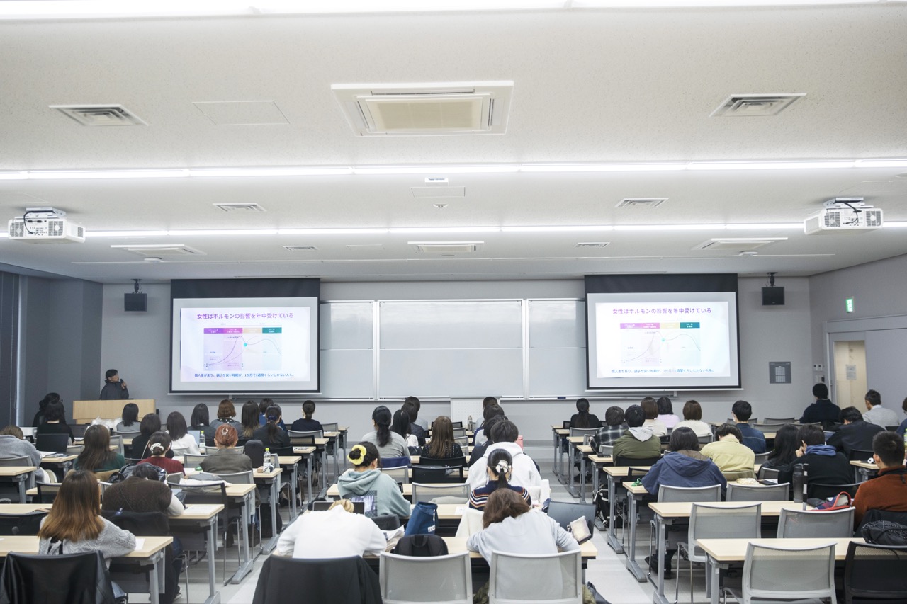 女性特有の生理や出産は、性差や年齢に関係なく、社会全体として捉えなければいけない課題のひとつ。そうしてテーマへの理解をより深めるべく、城西大学で特別講義「女性のゆらぎを考える」が開催されました。城西大学薬学部薬科学科、ライフスタイルコスメブランド〈THREE〉を運営する「株式会社ACRO」、女性の心と体を学ぶための教育プログラムを提案する「Woman Life+Lab」の三者により取り組みを通して、各人は何を感じたのか。後編では、「ACRO」の大髙昌さんと、この講義の発起人である薬学部薬科学科教授・鈴木龍一郎さんに話を聞きました。