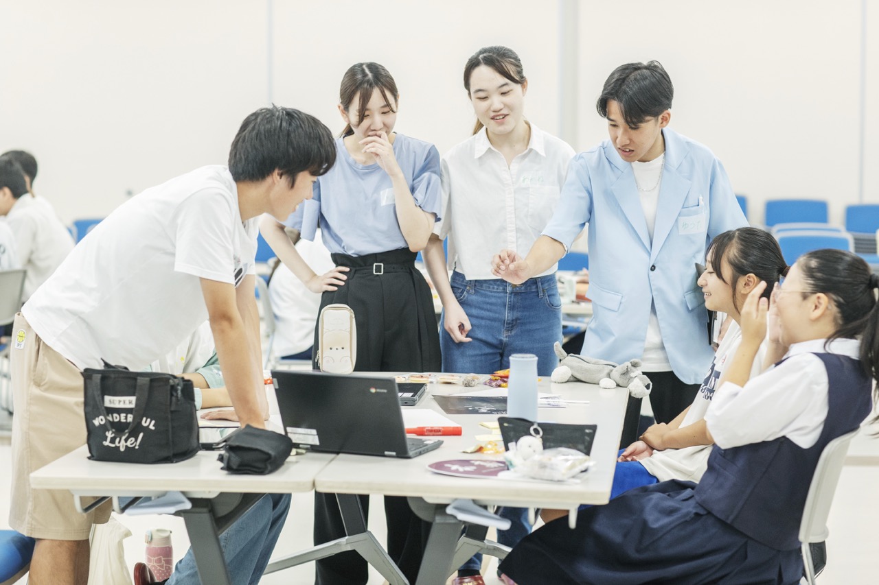 ユウタ 自分たちはいま「協創力体験演習」という、あらゆる学部の人が集まり、コミュニケーションを通じて課題を解決する授業があるんです。まさに今日と同じような内容ですが、簡単なようで難しい。でも、中高生たちは想像を超えてました(笑)。