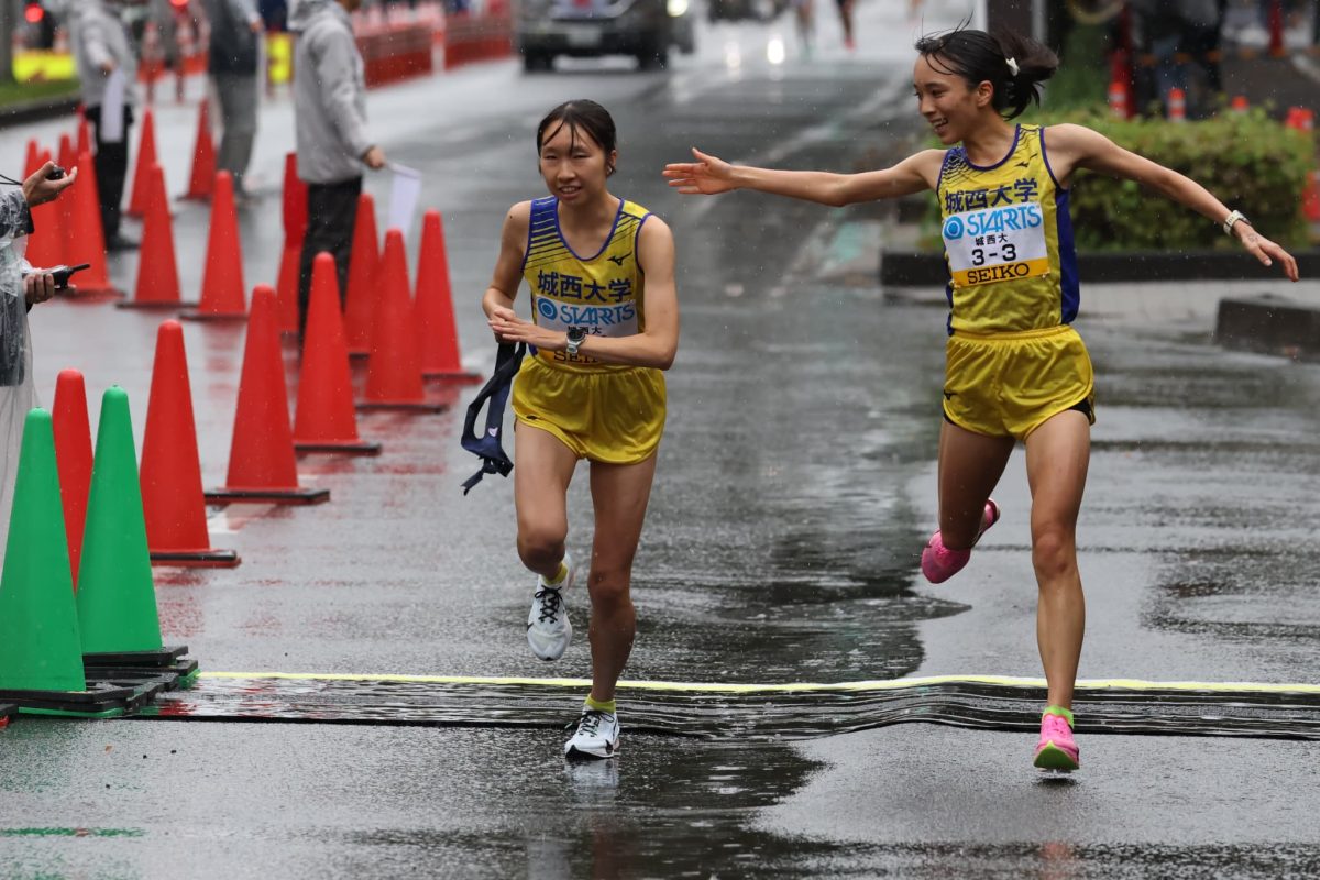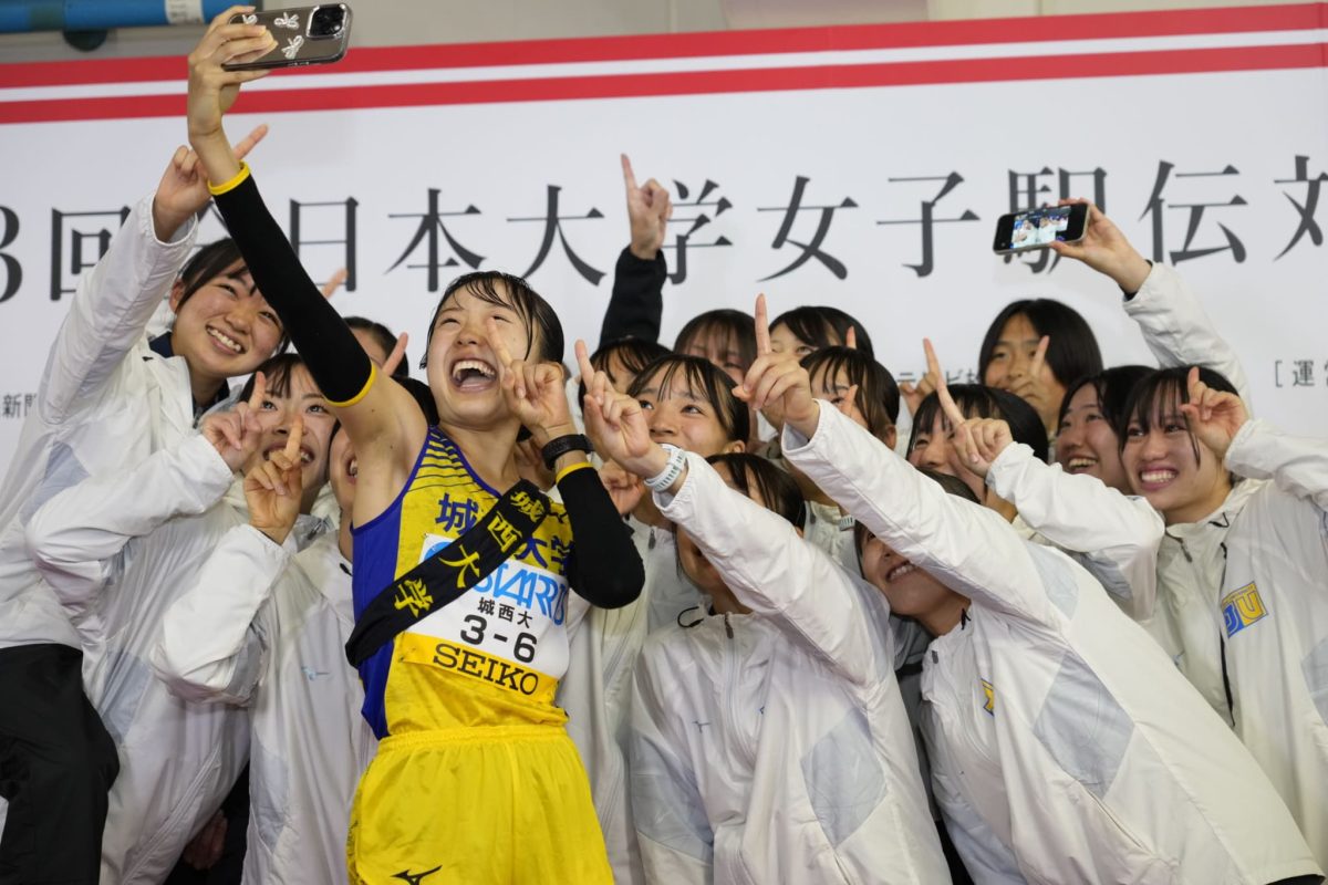 区間新だった関東女子駅伝に続いてアンカーを務めた金子主将は「今年のチームは頼もしいメンバーがたくさんいて、わくわくするチーム。全員駅伝で『日本一』をつかみにいきます」と語っていました。前を行く東北福祉大学の選手をかわした後、残り1kmを切って大東文化大学の選手を大逆転。両手の人差し指を掲げて満面の笑みでゴールテープを切りました。