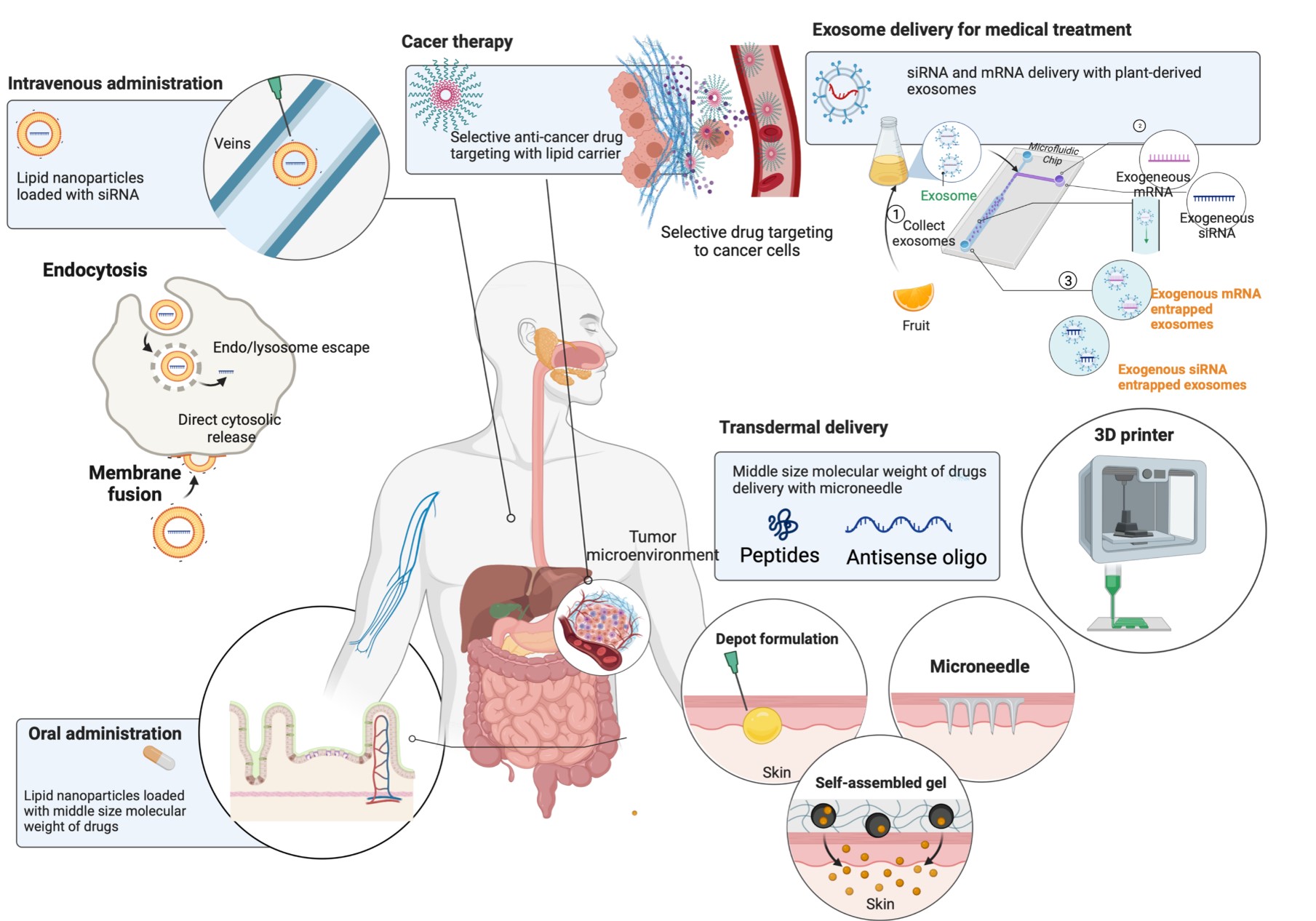 がん治療、皮膚疾患治療、アルツハイマー治療薬の開発など次世代型薬物送達方法の開発